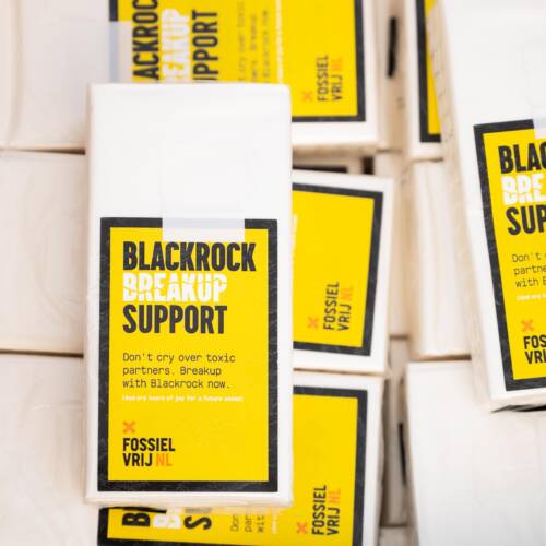 Our ‘couple therapy sessions’ gave pension fund executives the chance to practice what they know they need to do: break up with BlackRock. Because sometimes you need to say the words out loud before you can actually do it. To support them in their journey, we handed out tissues and cheat sheets for a clean break.