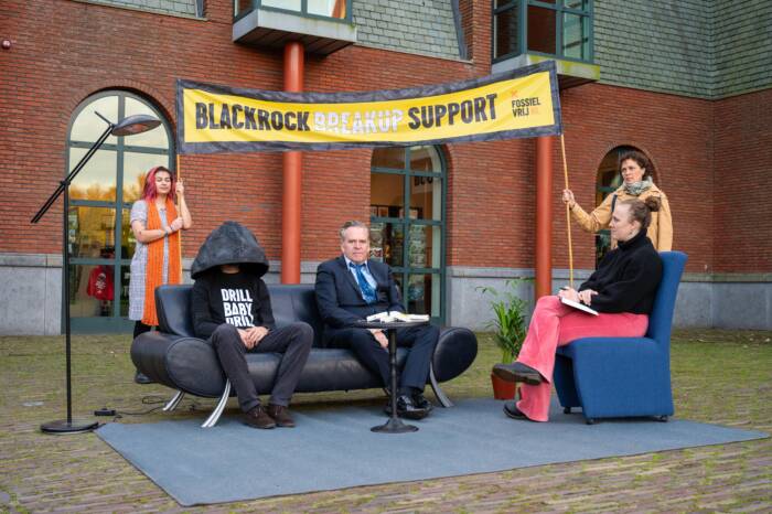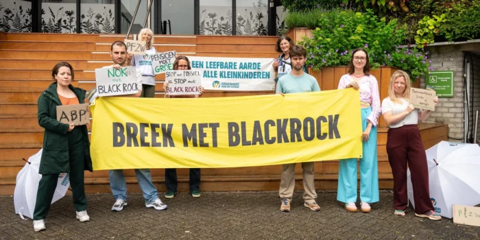 Dutch pension funds promise to invest sustainably, but work together with climate polluter and vulture capitalist BlackRock. Together with pension participants, we are raising the pressure to cut the ties.