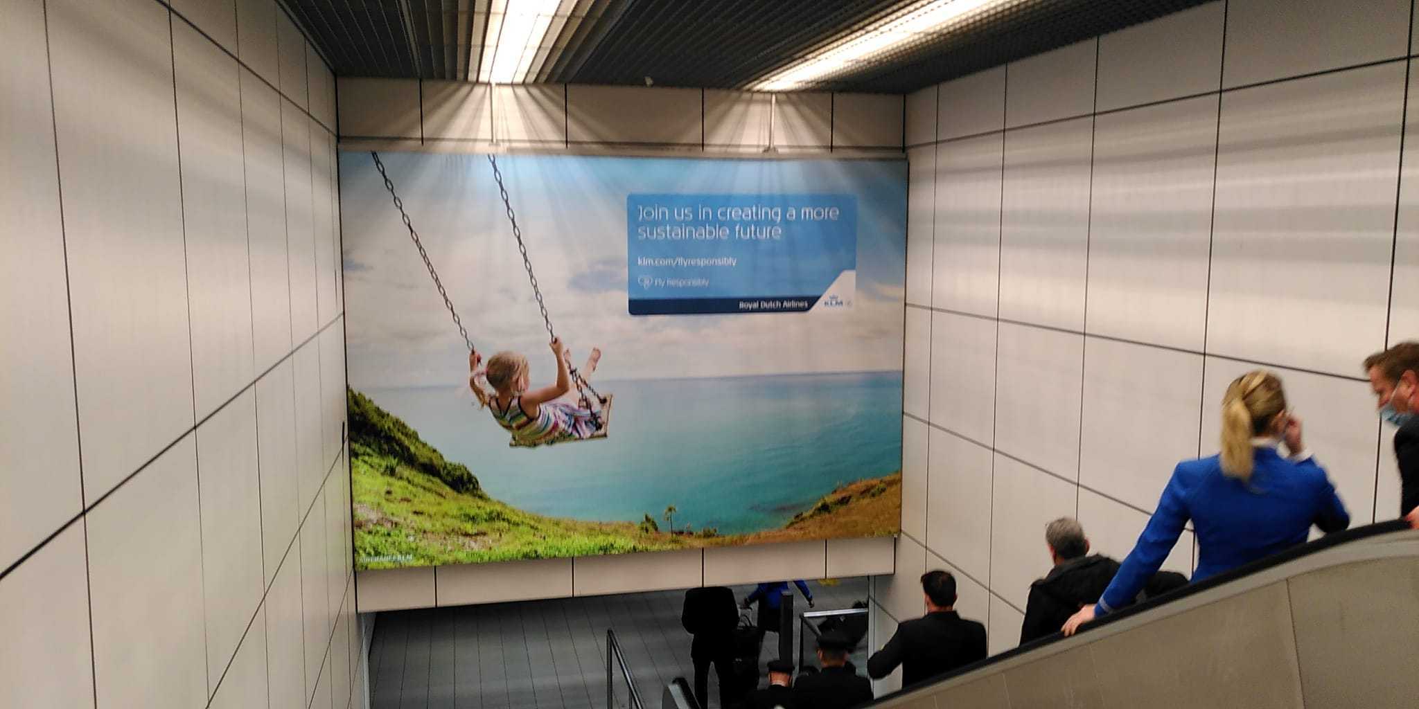 KLM beweerde in deze campagne “onderweg te zijn naar een duurzamere toekomst”, maar klopt dat wel? KLM zet nog steeds volop in op verdere groei van het luchtverkeer, en lobbyt actief tegen klimaatbeleid.