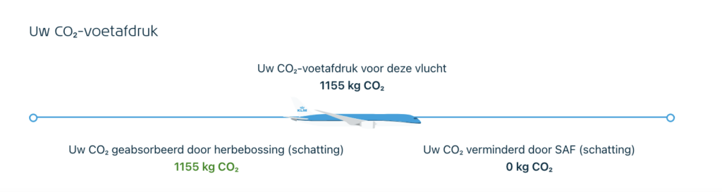 De reclames van KLM gaan niet alleen over de toekomst. KLM doet alsof het nú al mogelijk is om de klimaatschade van vliegen te reduceren of compenseren. KLM biedt bijvoorbeeld aan klanten een CO2-impact-programma aan. Het beweert dat klanten hun “voetafdruk kunnen verminderen” of hun uitstoot kunnen “compenseren” door een bijdrage te doen aan een herbebossingsprogramma, of door alternatieve brandstoffen te kopen.