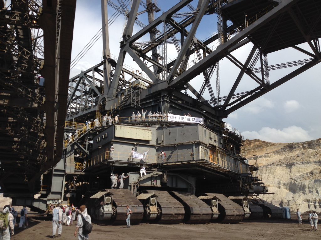 That was great but was it all just symbolic? Would they just let us get on with our stuff and resume business as usual? I didn’t know. I did hear that another finger had occupied a digger on the lowest level and they were in there for the long haul and that I had made quite a few pictures that were tweeted so we must have some impact. Just too bad Vattenfall didn’t have some proper WIFI set up and we lost all connection when we arrived at the digger.