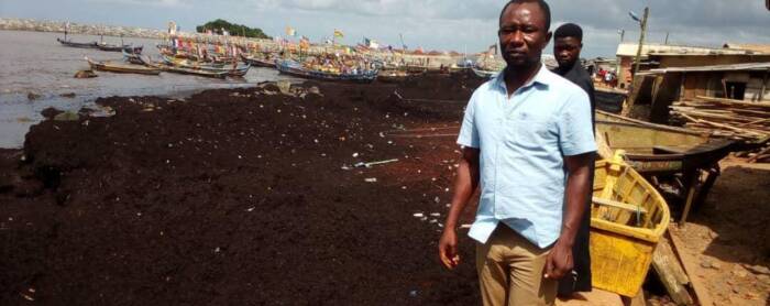 At the same time, the effects of climate change are already making themselves felt in Ghana. The oceans are warming – thanks to fossil fuel companies like Tullow Oil and their financiers – and this creates a favourable environment for sargassum. This type of seaweed is now growing faster than ever before. [8] “It’s a kind of weed-like seaweed that mainly occurs in the Atlantic Ocean,” Elizabeth explains. “But two years ago, it washed up on our coastline for the first time. You could see it from miles away. It was a disaster.”