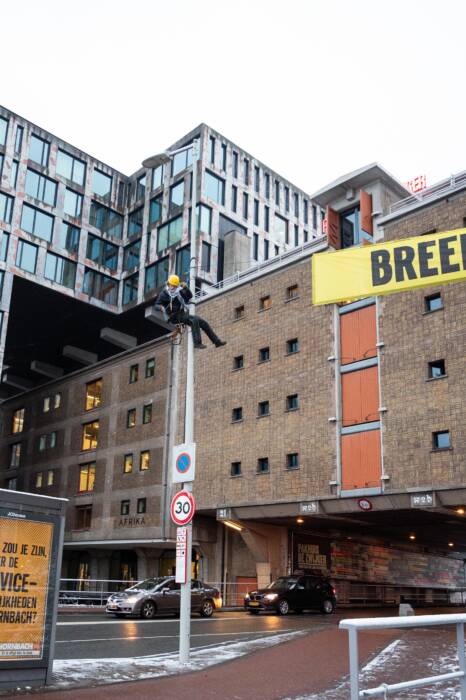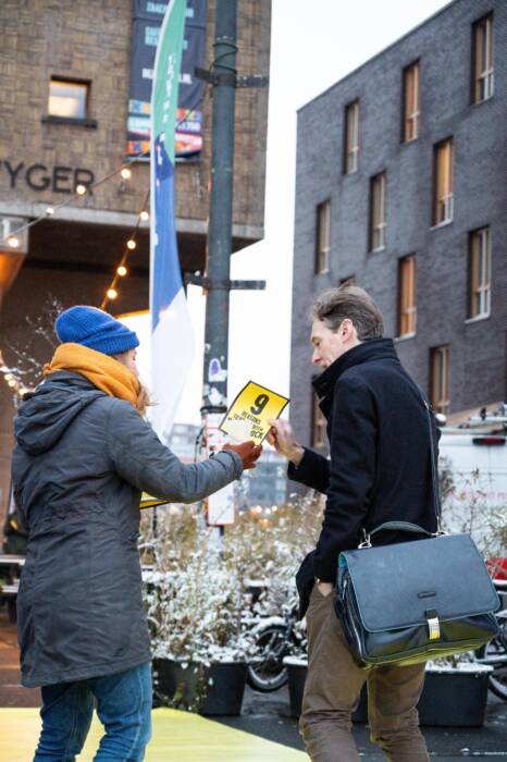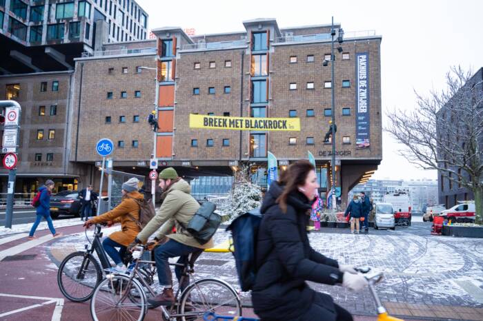 Het is tijd om de bezoekers van het evenement wakker te schudden. Om écht een duurzame koers te varen, moeten ze breken met BlackRock. Daarom stonden wij vandaag voor de deur met een grote ‘Breek met BlackRock’ banner en flyers met 9 redenen om de samenwerking te beëindigen.